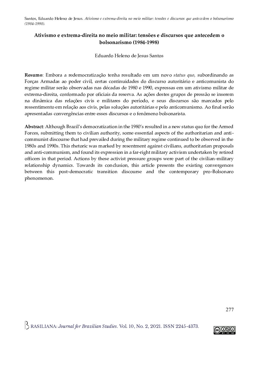 Autor: Sérgio José Custódio Resumo: Esta obra é importante para o campo.Débora Cristina Jeffrey (Unicamp), Acácio Sidinei Almeida Santos (UFABC) e Ricardo Alexino Ferreira (USP) Nesta obra monumental, Sérgio José Custódio analisa, bravamente, os feitos e vitórias dos movimentos sociais que lutaram, desde os cursinhos populares até o parlamento brasileiro, […]
