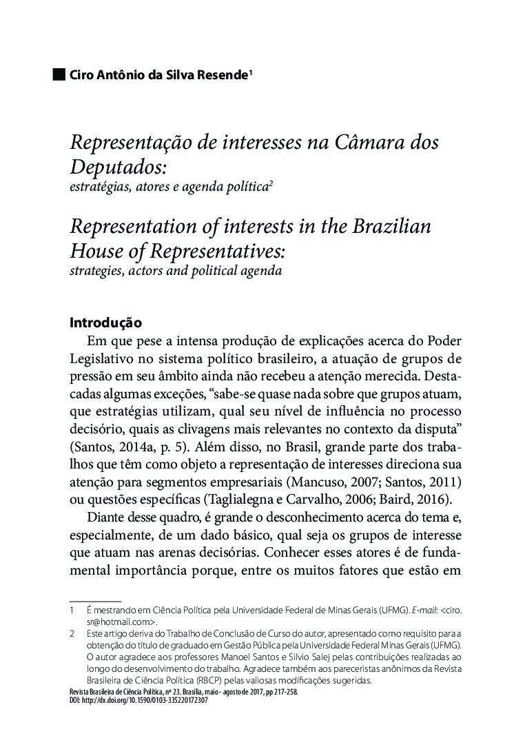 that lobbying gained strength. The goal of this essay is to analysis what are the characteristics of the lobbying successes of the Confederação Nacional da Indústria (CNI) through Agenda Legislativa da Indústria, which has been able to organize the political strategies of the national