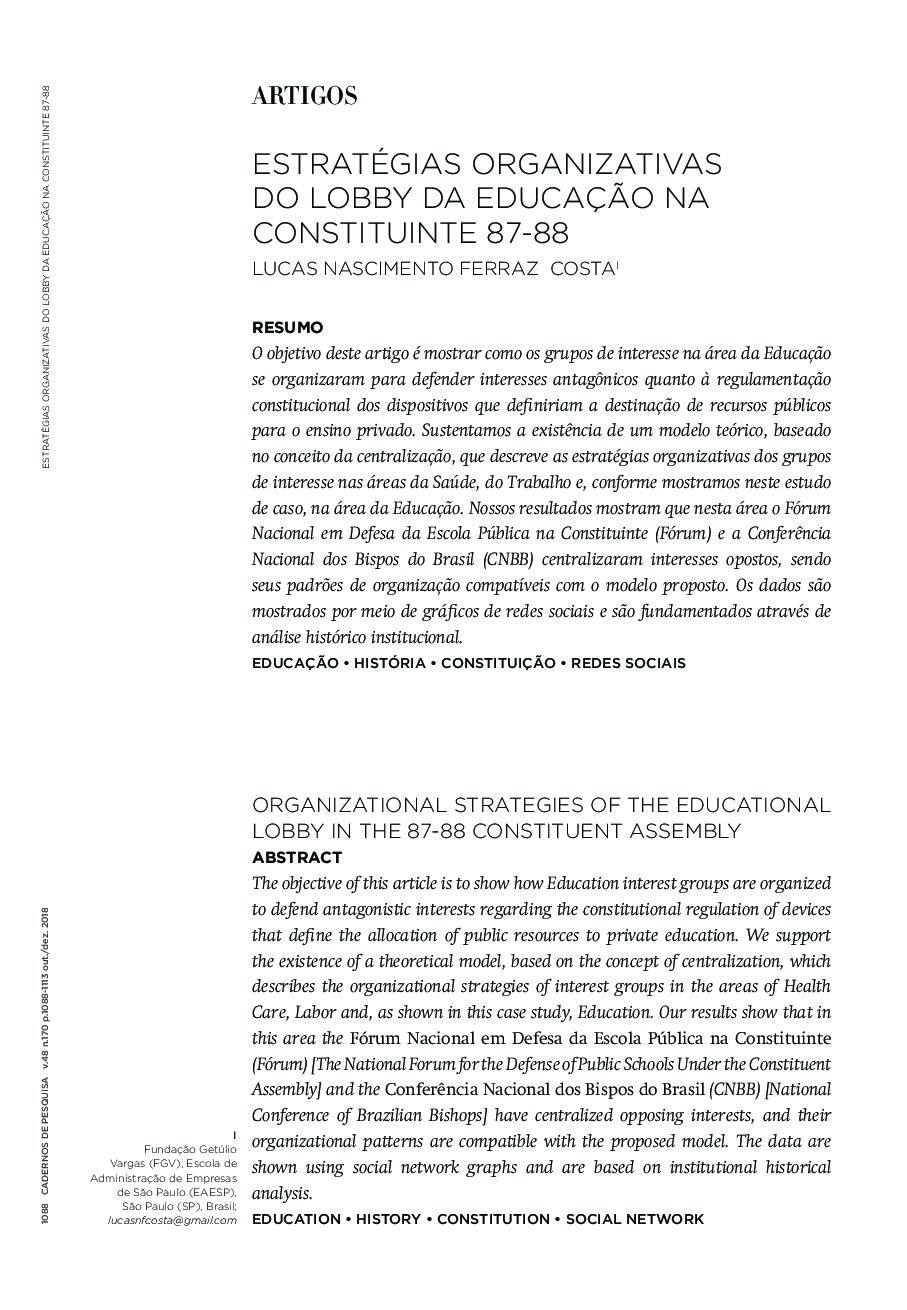 This chapter describes the structure and action of organized interests in the Brazilian political system. I trace the complex process of interest articulation, focusing on the period after the Constitution of 1988. Brazilian interest groups were initially regulated as a corporatist model, but the system has been changing into a hybrid system that retains structures of corporatism but coexists with a growing pluralism. Following the introduction, I describe the most active interest groups in the country, looking at organizations of the corporatist system, inherently pluralistic entities, social movements, and new forms of representation. I then discuss the goals, arenas, and strategies of lobbying in Brazil, considering the interests acting in the parliament and the executive together with the regulatory agencies and the judiciary. In the last section, I describe the institutional changes in the context of the current political and economic crisis, raising hypotheses about the consequences of these changes for interest representation in Brazil. Three recent changes are the most relevant: the labor reform of 2017, the ending of campaign financing by companies in 2015, and the current regulation of lobbying.