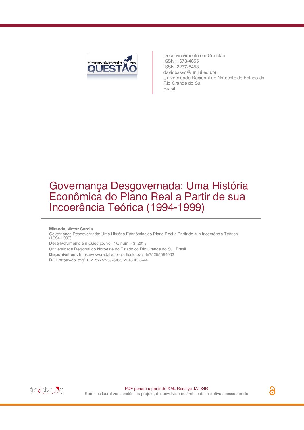 O presente texto visa a analisar o processo operacional do Plano Real e seus efeitos mensurados na economia e na política brasileira no momento de existência da chamada âncora nominal baseada na paridade cambial entre a moeda nacional e o dólar (1994-1999). Interpreta-se o Plano Real como projeto que buscava a estabilidade da economia por meio do combate à hiperinflação e que esteve envolvido também num arranjo conjuntural específico, que demanda interpretação histórica – não somente técnico-econômica. Partindo do pressuposto de que houve influência da teoria neoclássica da escolha de instrumentos e objetivos de estabilização macroeconômica de Robert A. Mundell (1932-), o presente texto busca apurar a manifestação histórica de efeitos econômicos e políticos do Plano Real e se houve coincidência entre o que fora escrito por um teórico que influenciou a formação dos “pais do real” e a realidade da experiência de âncora cambial desenvolvida no Brasil a partir de 1994. A pesquisa realizada indica que houve profunda incoerência entre a presunçosa teorização de Mundell e os efeitos historicamente encontrados, desmontandose a concepção de infalibilidade das teorias neoclássicas. Pelo contrário: tais efeitos provocaram aprofundamento da condição de dependência do país diante do cenário do capitalismo internacional daquele momento, por meio do agravamento da crise no balanço de pagamentos e da financeirização do déficit público da União.