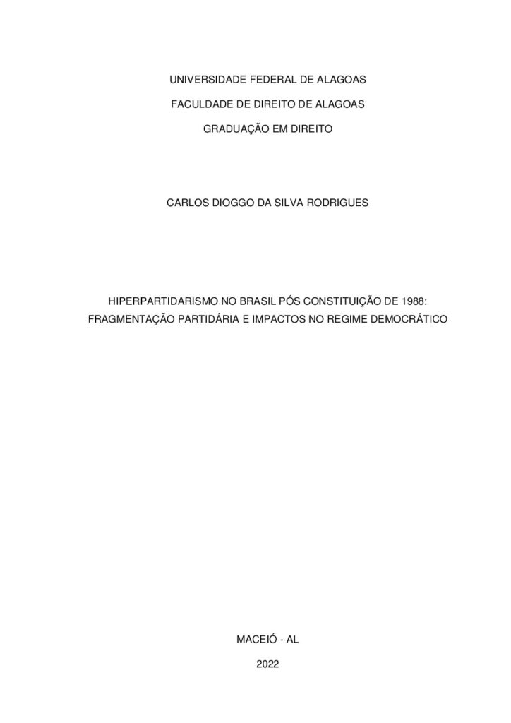 Autor: Carlos Dioggo da Silva Rodrigues Resumo: Este trabalho buscou analisar o fenômeno do hiperpartidarismo no Brasil com o advento da Constituição Federal de 1988. Dentre as nuances abordadas, inclui-se a essencial conceituação do que vem a ser a instituição partido político e seu desenvolvimento na história para subsidiar a […]
