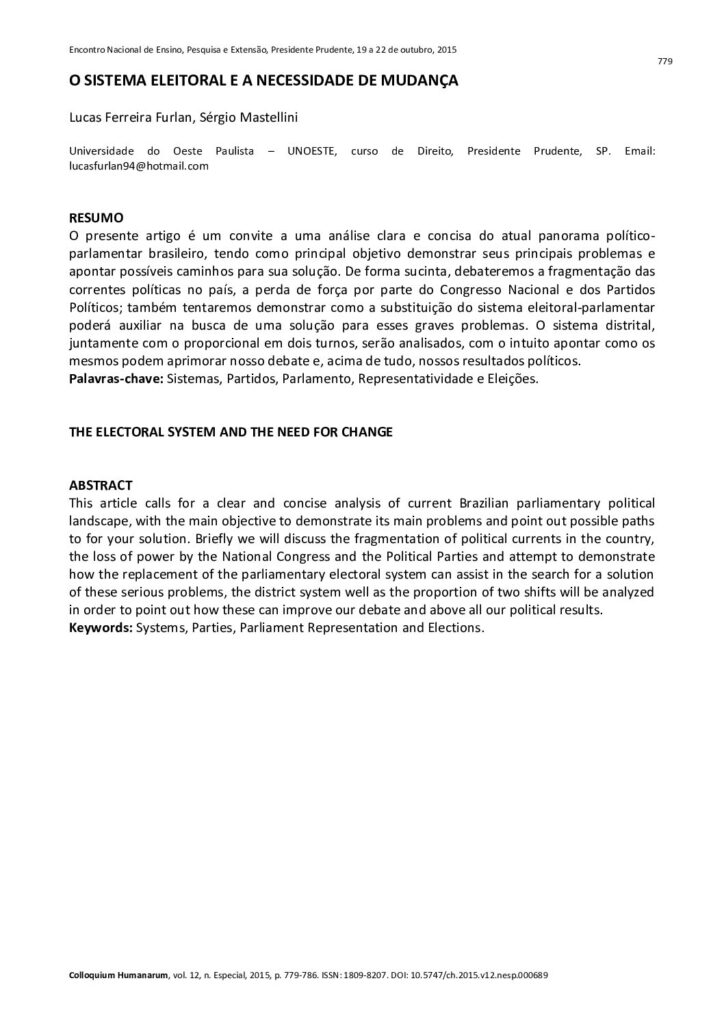 Autores: Lucas Ferreira Furlan e Sérgio Mastellini RESUMO: O presente artigo é um convite a uma análise clara e concisa do atual panorama político parlamentar brasileiro, tendo como principal objetivo demonstrar seus principais problemas e apontar possíveis caminhos para sua solução. De forma sucinta, debateremos a fragmentação das correntes políticas […]