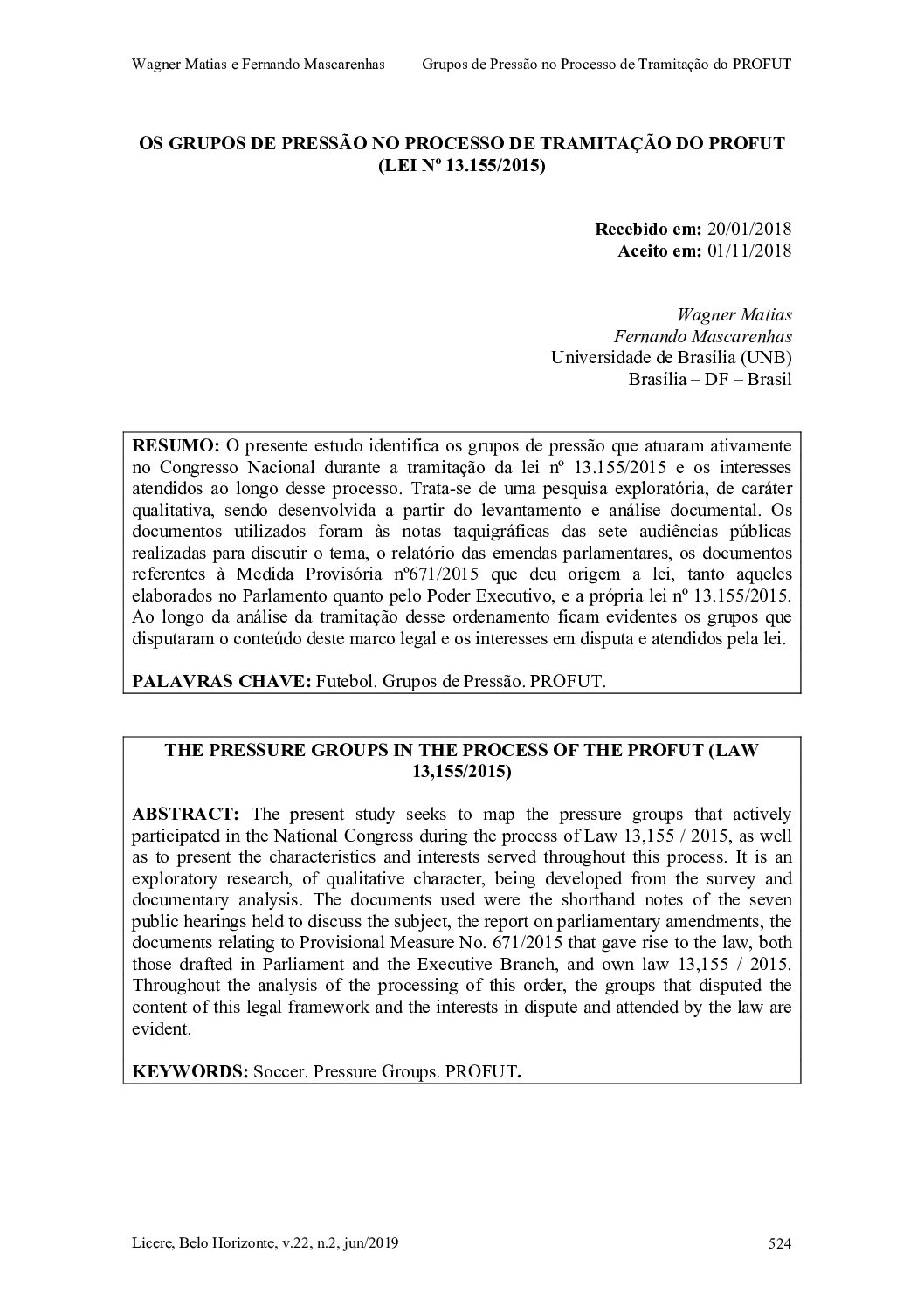 O presente estudo identifica os grupos de pressão que atuaram ativamente no Congresso Nacional durante a tramitação da lei nº 13.155/2015 e os interesses atendidos ao longo desse processo. Trata-se de uma pesquisa exploratória, de caráter qualitativa, sendo desenvolvida a partir do levantamento e análise documental. Os documentos utilizados foram às notas taquigráficas das sete audiências públicas realizadas para discutir o tema, o relatório das emendas parlamentares, os documentos referentes à Medida Provisória nº671/2015 que deu origem a lei, tanto aqueles elaborados no Parlamento quanto pelo Poder Executivo, e a própria lei nº 13.155/2015. Ao longo da análise da tramitação desse ordenamento ficam evidentes os grupos que disputaram o conteúdo deste marco legal e os interesses em disputa e atendidos pela lei.